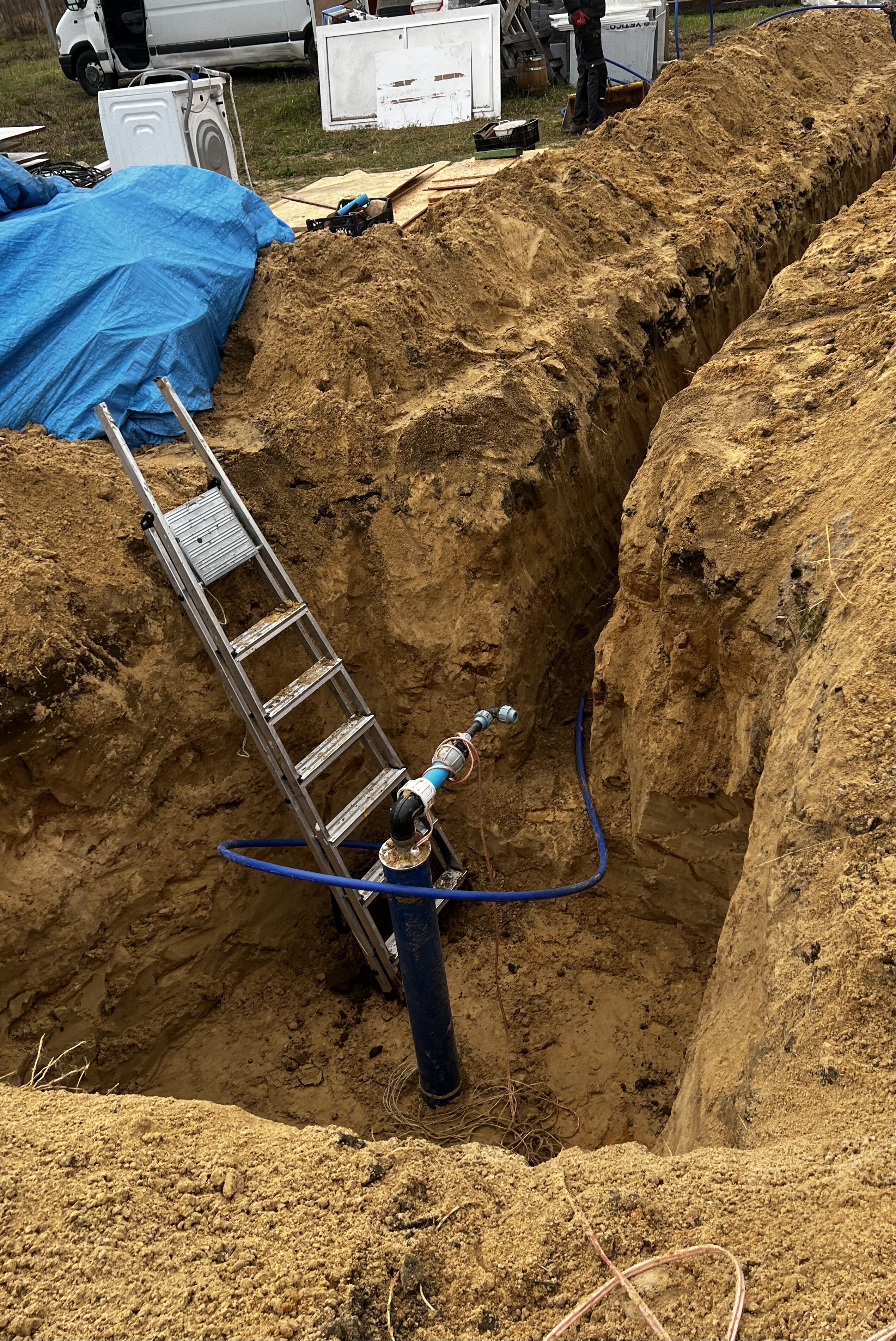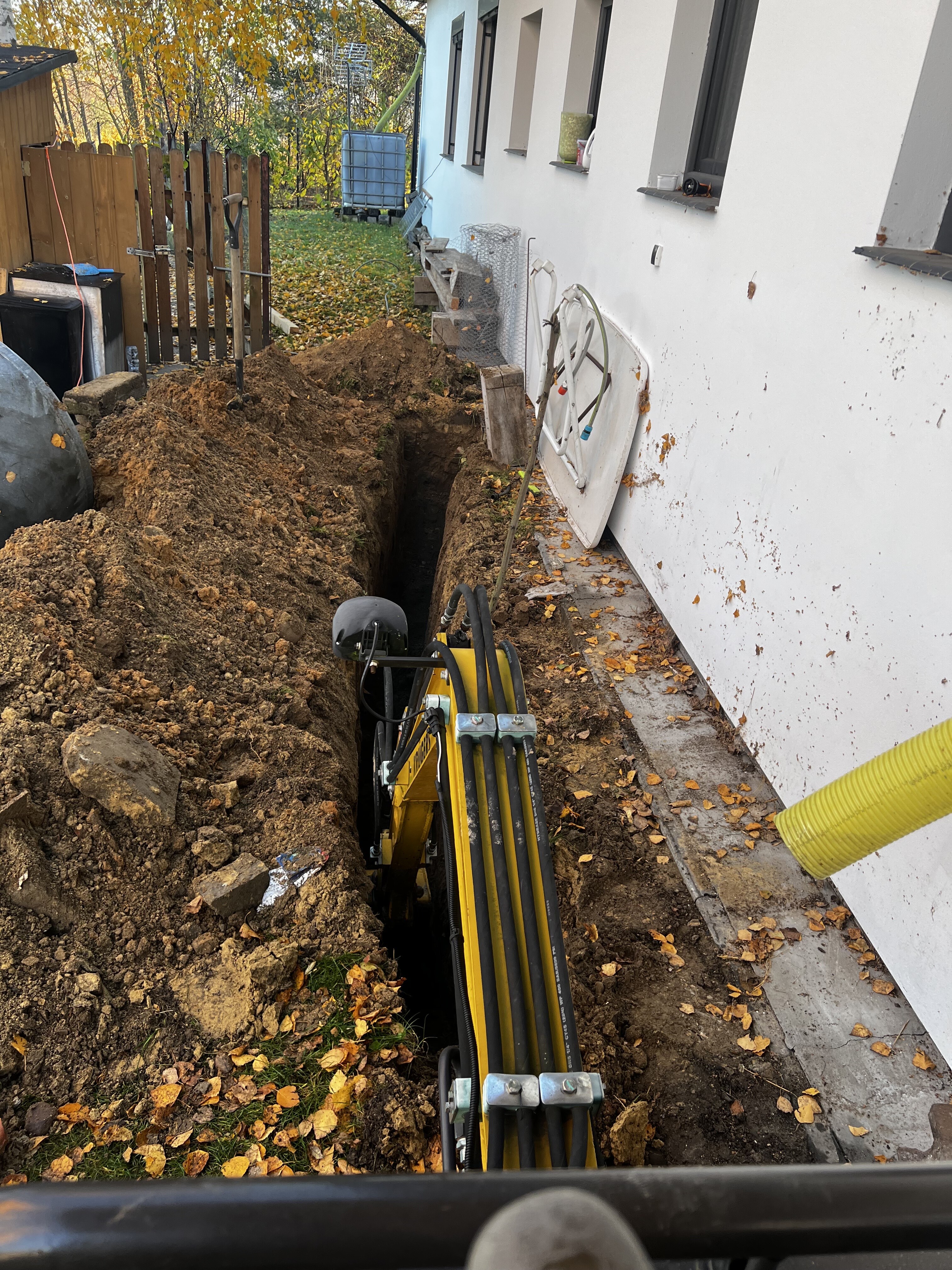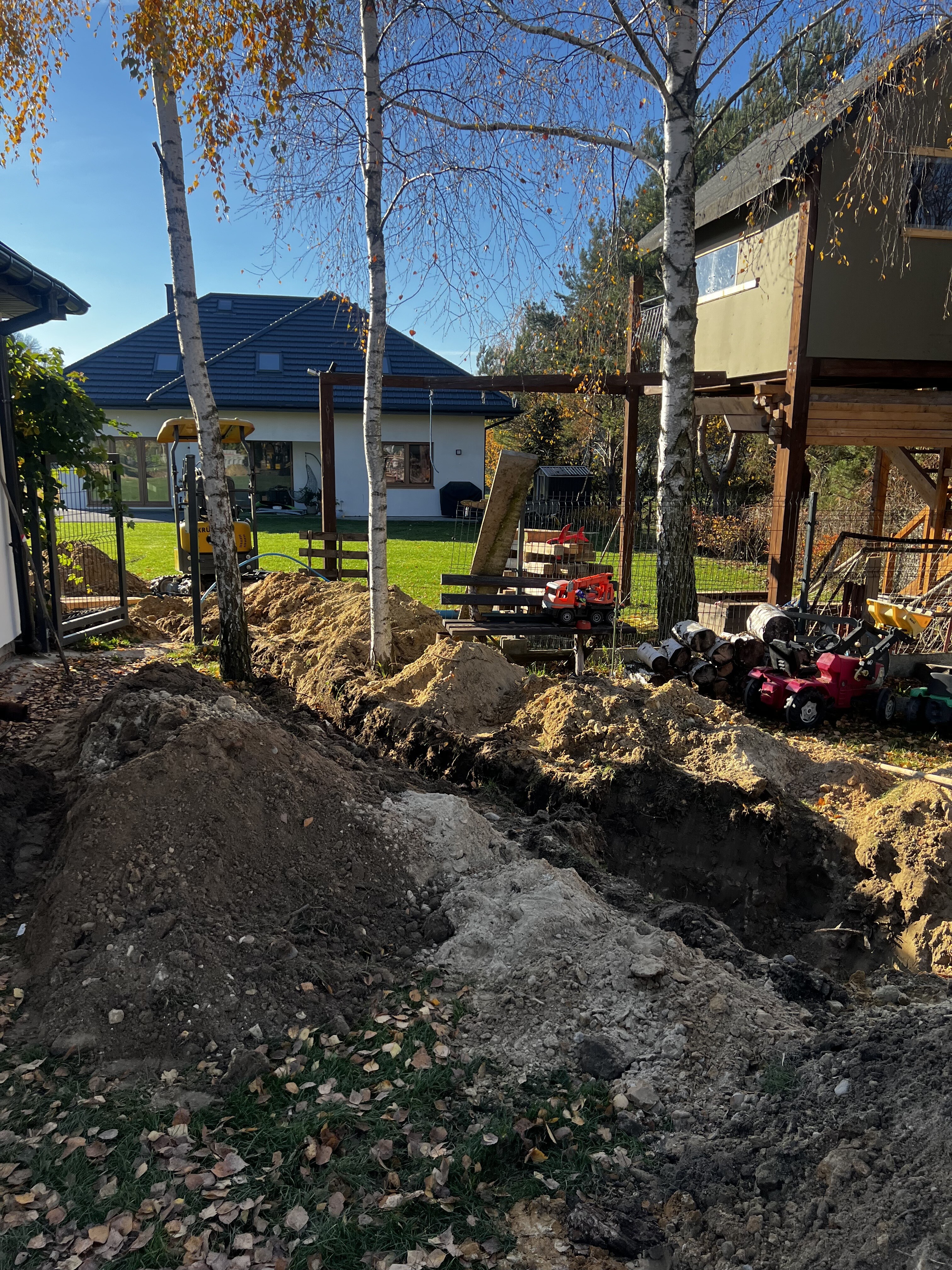- wykopy pod instalacje (woda, prąd, gaz)